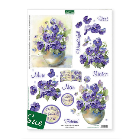 3D Push Out Sheet - Katy Sue - Vase of Pansies - One Sheet