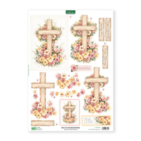 3D Push Out Sheet - Katy Sue - Wooden Cross & Roses - One Sheet