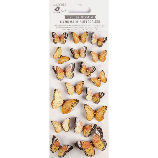 Little Birdie Handmade Stick on Embellishments - 3D Jewel Butterflies - Amber