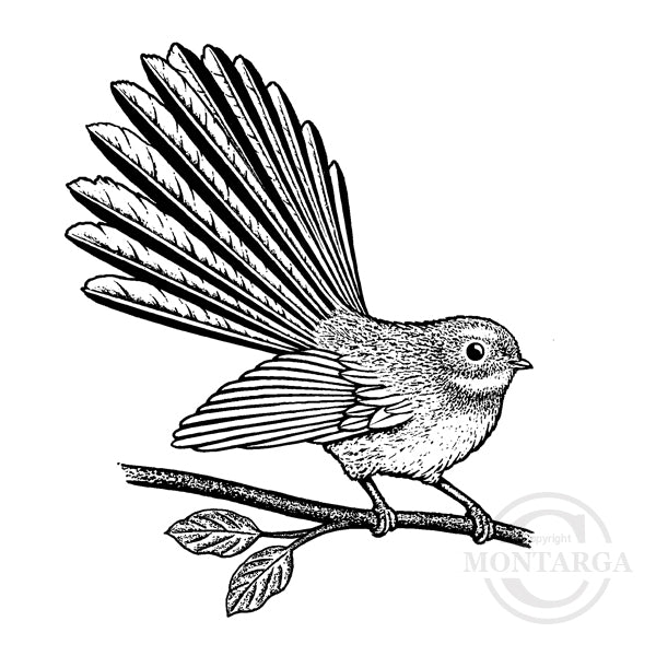1237 G - Pīwakawaka Fantail on Branch Rubber Stamp