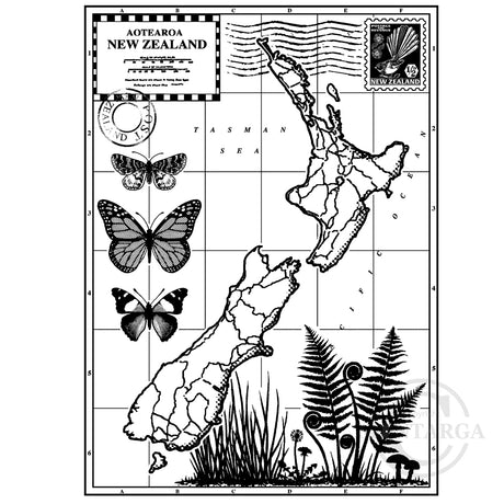 0603 J - Aotearoa New Zealand Map Collage Rubber Stamp
