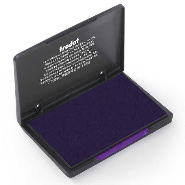 Pre inked pad with easy to use flip lid and sturdy plastic outer casing.